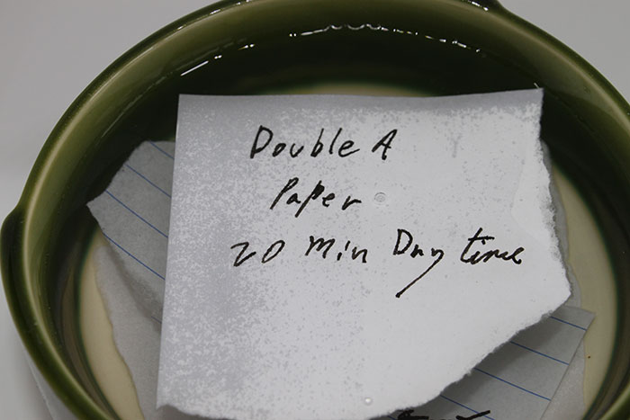 แล้วก็นำกระดาษแผ่นแรกขึ้นจากน้ำครับ และนี่คือสภาพที่ดำอยู่ในน้ำมา 1 ชั่วโมงเต็ม
